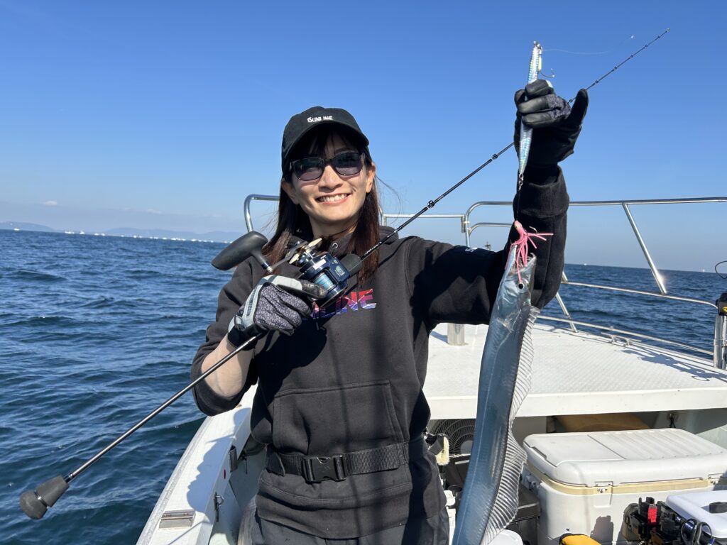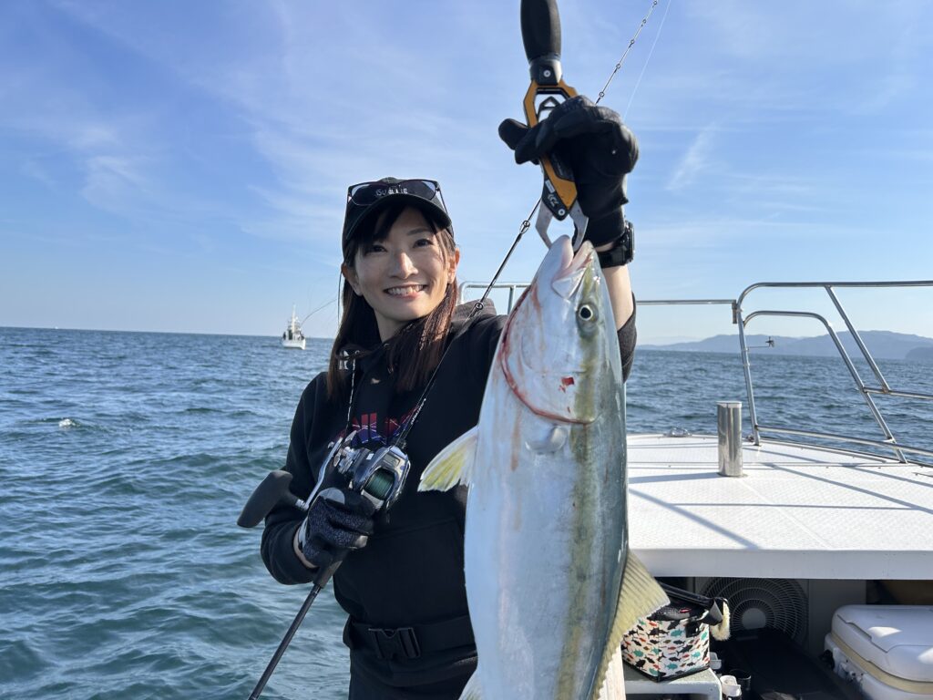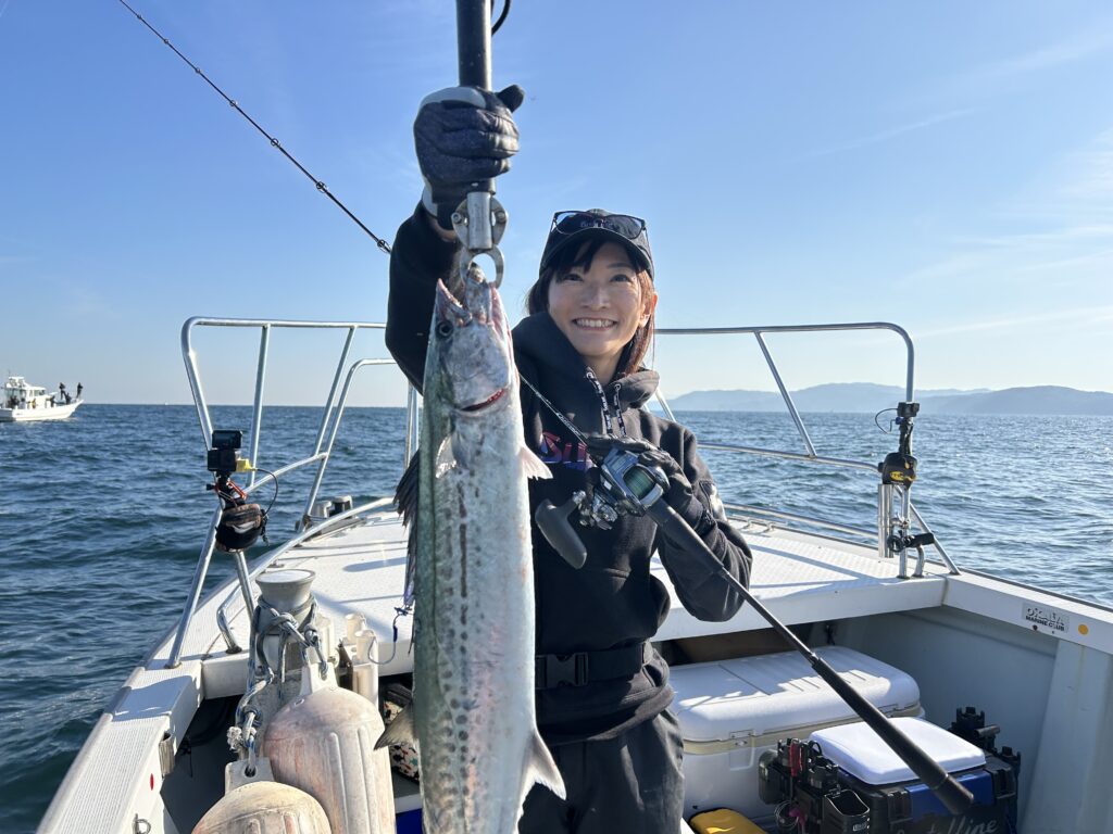 ダイワの大会の下見に久角真梨奈さんが来て下さいました。青物、太刀魚共に良く釣れました👍 途中アタリ遠のいた中、毎流しヒット3連発‼️ 流石ですね👍👍👍