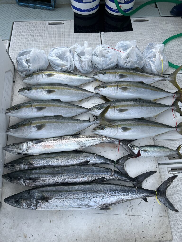 青物は時合らしい時合はありませんでしたが、 ポロポロと釣れました。 サワラのラインブレイク多数でした。 太刀魚は順調にお土産ゲットして頂けました👍