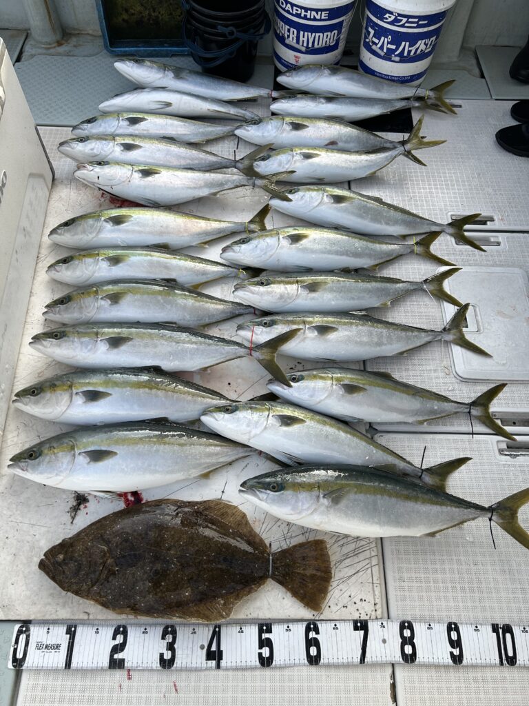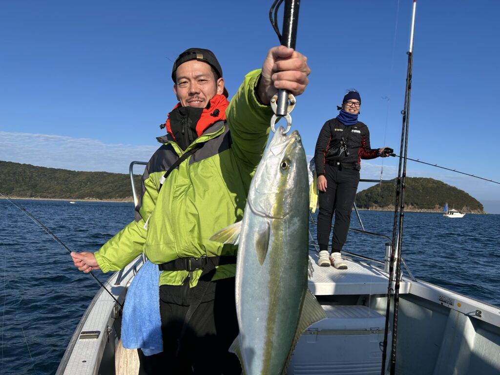 ジギングと飲ませで頑張って頂きました。 飲ませでメジロが終始良く釣れました👍👍 まだまだ釣れる状況でしたが、お客様お腹いっぱいで早上がりさせて頂きました。