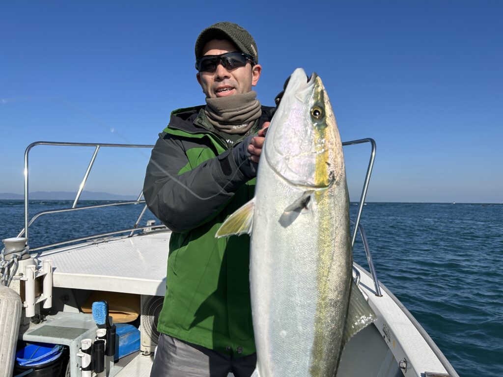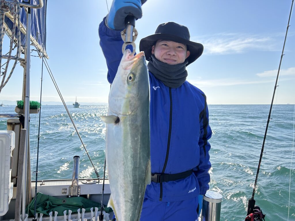 少人数で頑張って頂きました。 今日も飲ませの船は良く釣れてましたが、 ジグには反応悪しでした🤣 頑張ってシャクリ続けて、ブリ、メジロを釣って頂けました👍👍