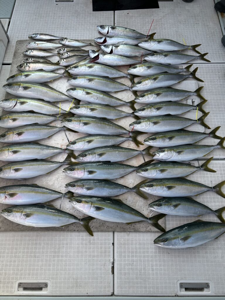 青物は4人ヒットの場面も有り良く釣れました👍👍👍 サビキのアジ狙いは短時間でしたが、ポロポロと釣れました👍
